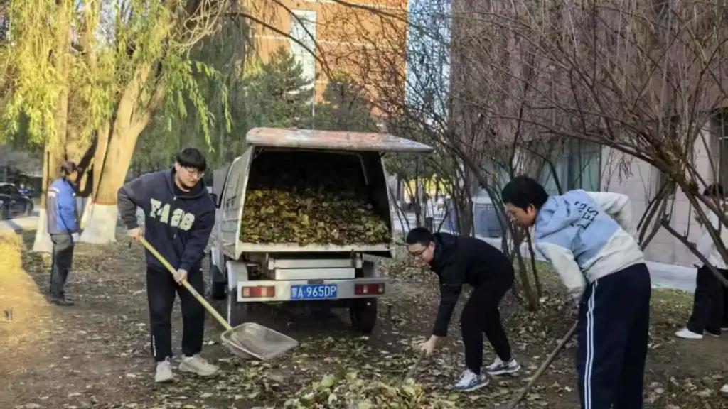 清扫落叶护校园,志愿服务践文明——2007so太阳集团青年志愿者服务队开展校园扫落叶志愿服务活动