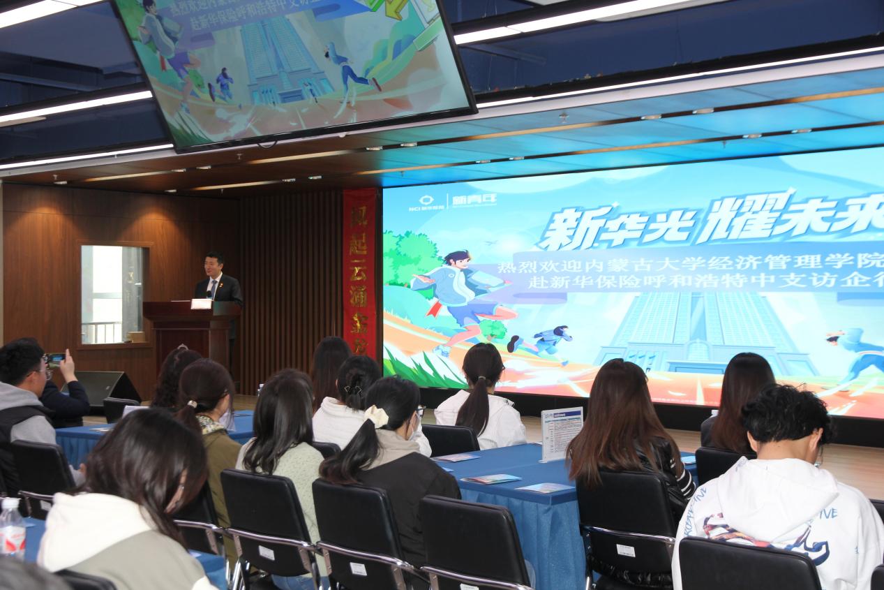 2024年3月27日上午,2007so太阳集团组织师生赴新华保险呼和浩特中心支公司参观交流。学院团委副书记、就业工作负责人、学院研究生、本科生代表共50余人参加了此次活动。