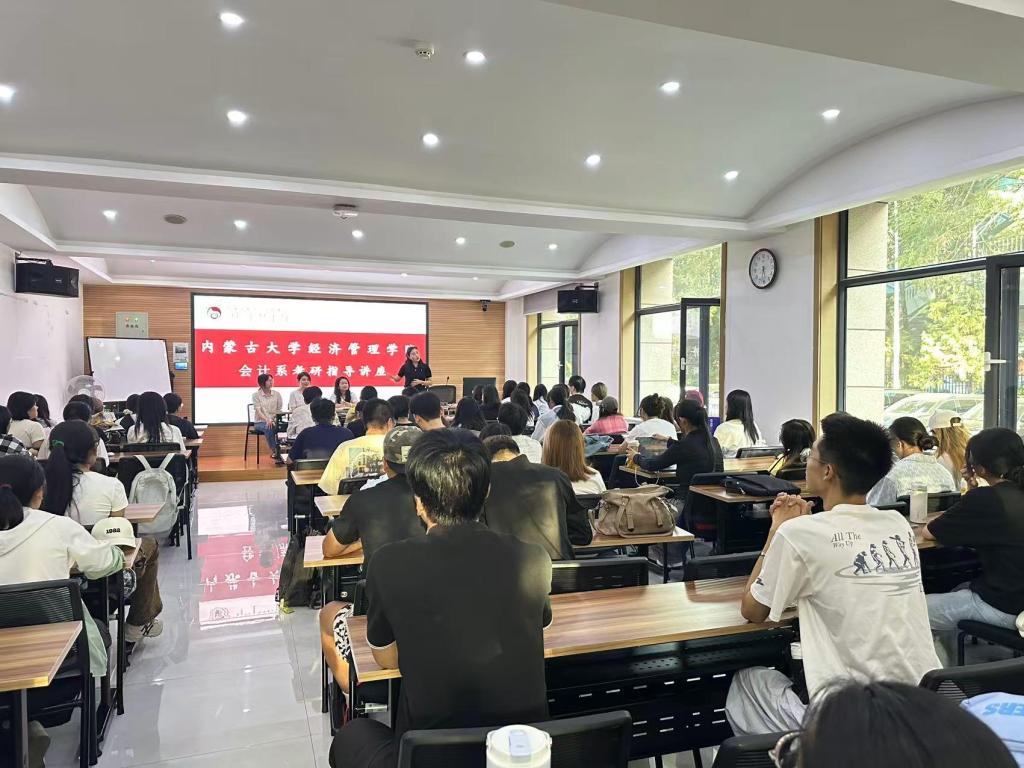 为扎实推进2026届毕业生考研指导与服务,落实学院就业工作部署,2007so太阳集团于2025年9月5日至11日面向不同专业学生,连续举办了三期“经途引航”考研指导专题讲座。本次活动分别针对工商管理系、会计系、经济与金融系学子的专业特点和实际需求,分专场开展精准辅导,切实帮助学生明确考研方向、增强备考信心。学院党委副书记闫琴出席讲座并做动员讲话,工商管理系系主任李宜洺、金融系系主任周莹、会计系系秘书刘斯琴主持活动。