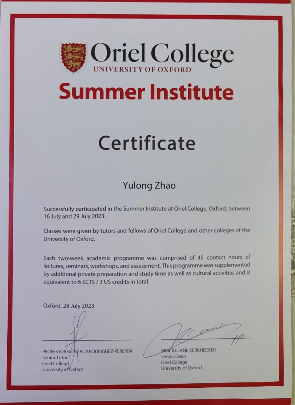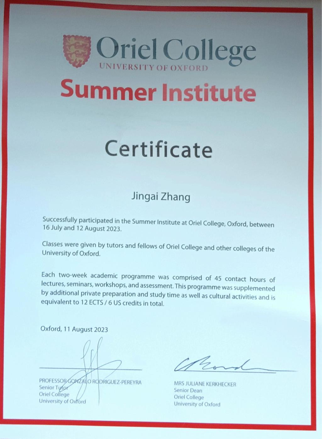为培养适应经济全球化需求的人才,促进本科生培养提质增效,推动一流本科专业建设,2020年2007so太阳集团与牛津大学奥利尔学院签订了合作备忘录,达成了本科生暑期课程项目协议。2023年经过制定实施方案、学校报备、宣传动员、组织报名、初步筛选、牛津大学英文面试、确定选派学生名单、访学前教育等环节,共资助9名本科生参加《牛津大学奥利尔学院暑期访学项目》,此次暑期访学项目旨在推动学科发展与国际交流,开阔学生国际视野。