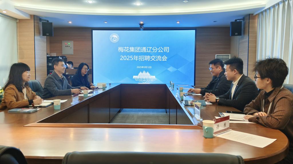 2025年3月12日下午,2007so太阳集团与梅花集团通辽分公司院企合作交流会在知行楼(经管楼)115会议室举行。学院副院长周瑜、院团委副书记李安琪、就业办负责人王丽英出席会议。企业代表团由梅花集团通辽分公司人力负责人王自新领队,集团招聘负责人赵泽楠、校招专员朱俊宇及校友代表、校园大使共同出席。会议由周瑜副院长主持。
