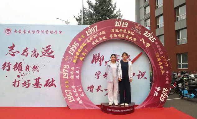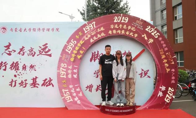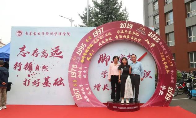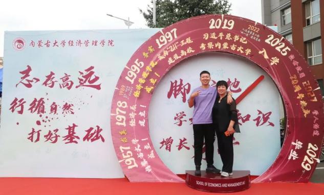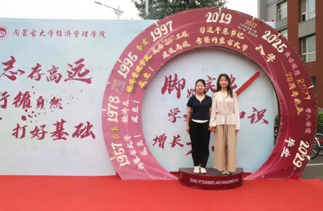 报到现场的打卡板上,习近平总书记对内大学子的殷切嘱托在阳光的照耀下熠熠生辉,字字句句都传递着温暖与力量;“日月争辉”时钟展板,是新生们的热门打卡点,新生及家长纷纷在此处留下进入大学的第一张照片,定格每一张青春洋溢的面孔、记录每一个美好灿烂的微笑。