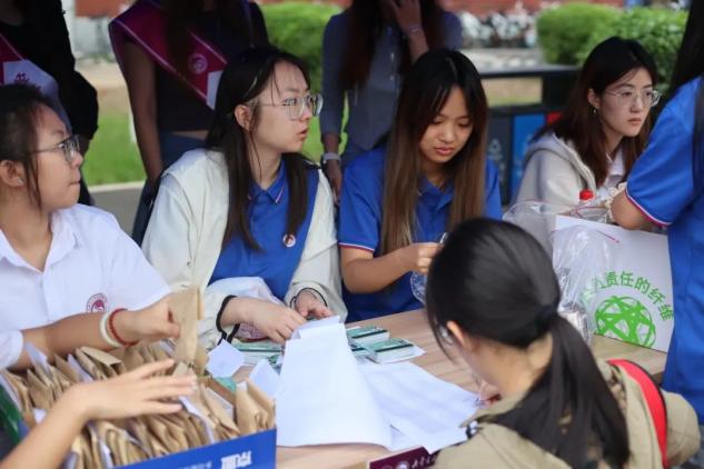 忙碌的穿梭于各个迎新点之间,热情周到的为新生及家长提供指路、引导、搬运行李等的服务。