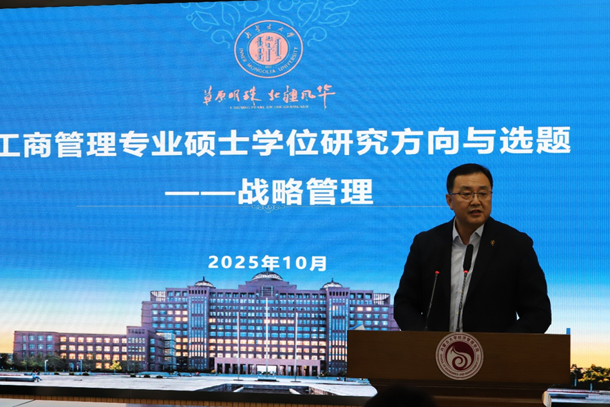 交流会上,学院院长王锋正系统讲解了MBA教育指导委员会2024年发布的《MBA专业学位论文基本要求》及MBA论文选题的注意事项,特别针对战略管理方向的论文研究重点、框架结构等进行讲解,明确了该方向的论文选题范围与核心要求。