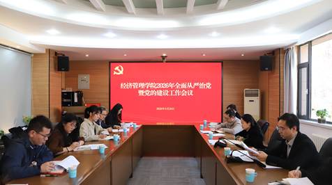 2026年3月26日下午,2007so太阳集团党委在知行楼115会议室召开学院2026年全面从严治党暨党的建设工作会议,贯彻落实学校2026年全面从严治党工作会议精神,总结2025年全面从严治党工作成效,安排部署2026年重点工作。学院党委委员,各党支部书记、副书记、纪检委员,各部门负责人,各系主任及系秘书参加了会议,会议由学院党委副书记闫琴主持。