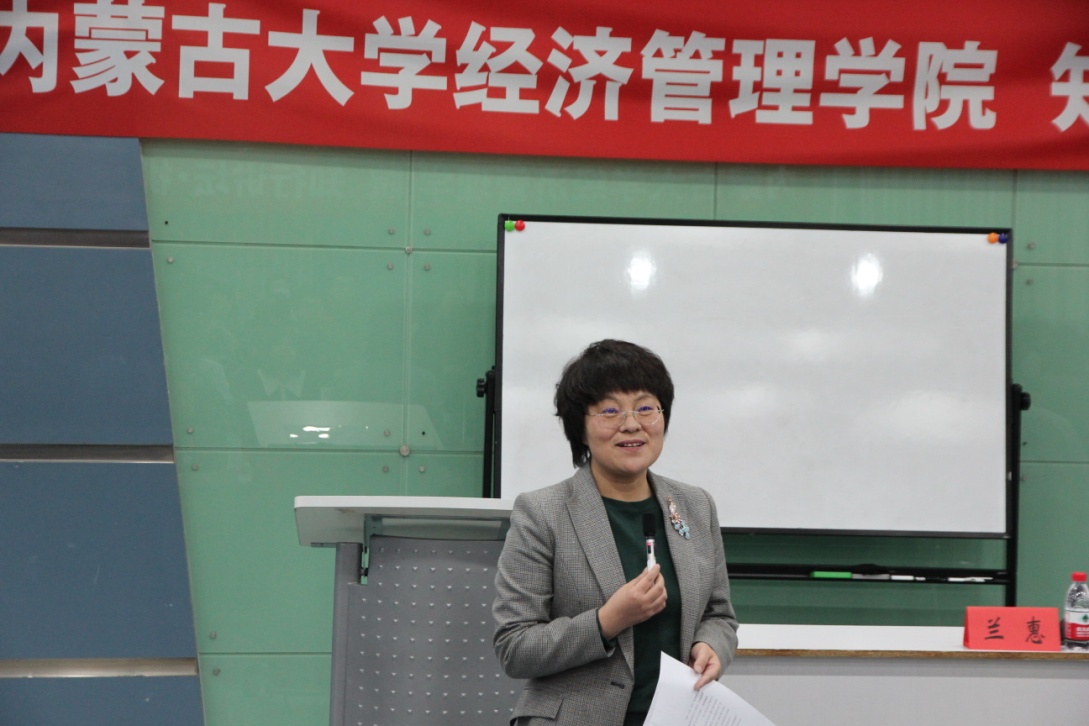 杜凤莲院长代表学院致辞,她表示,感谢兰惠先生在百忙之中为经管院师生进行专题讲座,介绍了兰惠先生的个人简介、工作经历及取得的成就。