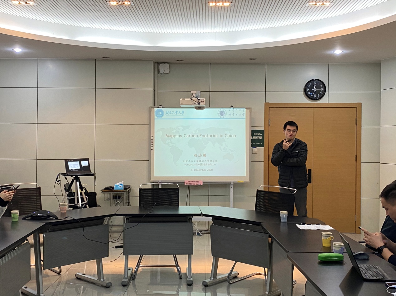 杨远韬博士研究发现,以往研究我国出口碳排放主要集中在国家层面或者省际层面,尚未有研究在空间上明确显示我国出口导致碳排放的空间分布图,缺乏这类信息可能导致对碳排放与最终消费者之间联系的误判。他向各位师生介绍我国出口到世界主要国家或地区在国内产生的高分辨率碳足迹空间分布等研究结果。