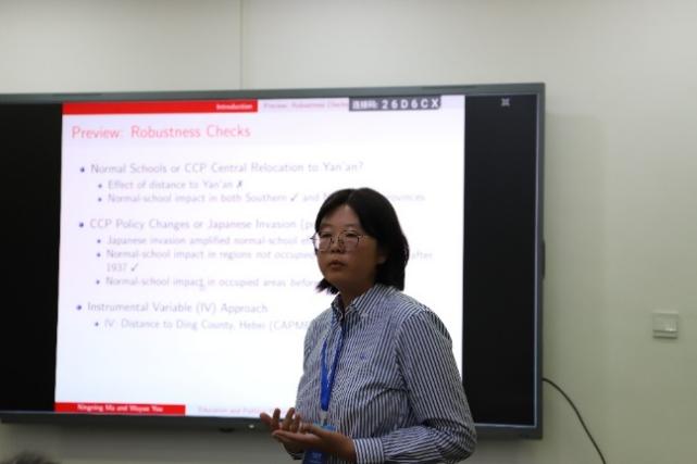 暨南大学马宁宁作了题为《Education and Political Participation: The Role of Normal School Expansion in the Communist Revolution in China》的报告,分析了师范教育与政治参与间的关系。