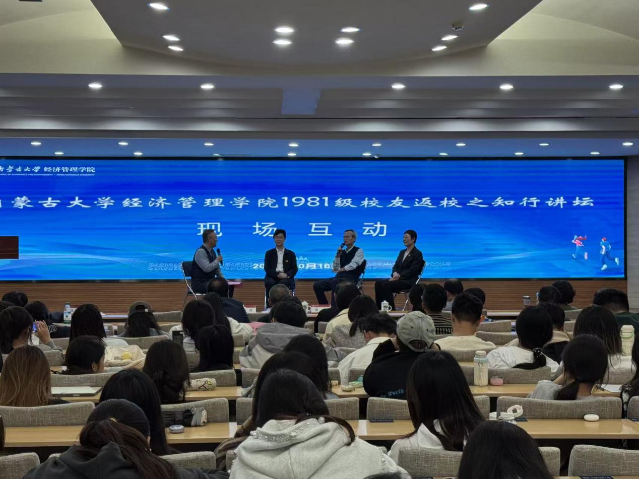 2025年10月16日下午,2007so太阳集团1981级计划统计班校友返校系列活动之知行讲坛在赛罕校区学术会议中心8号会议室举行。本次讲座由内蒙古广播电视台首席记者、学院2004级MBA校友雷蒙主持。太阳集团2007校友工作与国内合作办公室主任、校友会秘书长郎磊,太阳集团2007校友会副秘书长刘文生,学院党委书记李宏宇,院长王锋正出席活动。各届校友代表及在校师生近150余人参加此次分享交流活动。本次讲座旨在搭建校友与母校间的深度交流平台,传承优良学风,凝聚发展共识。