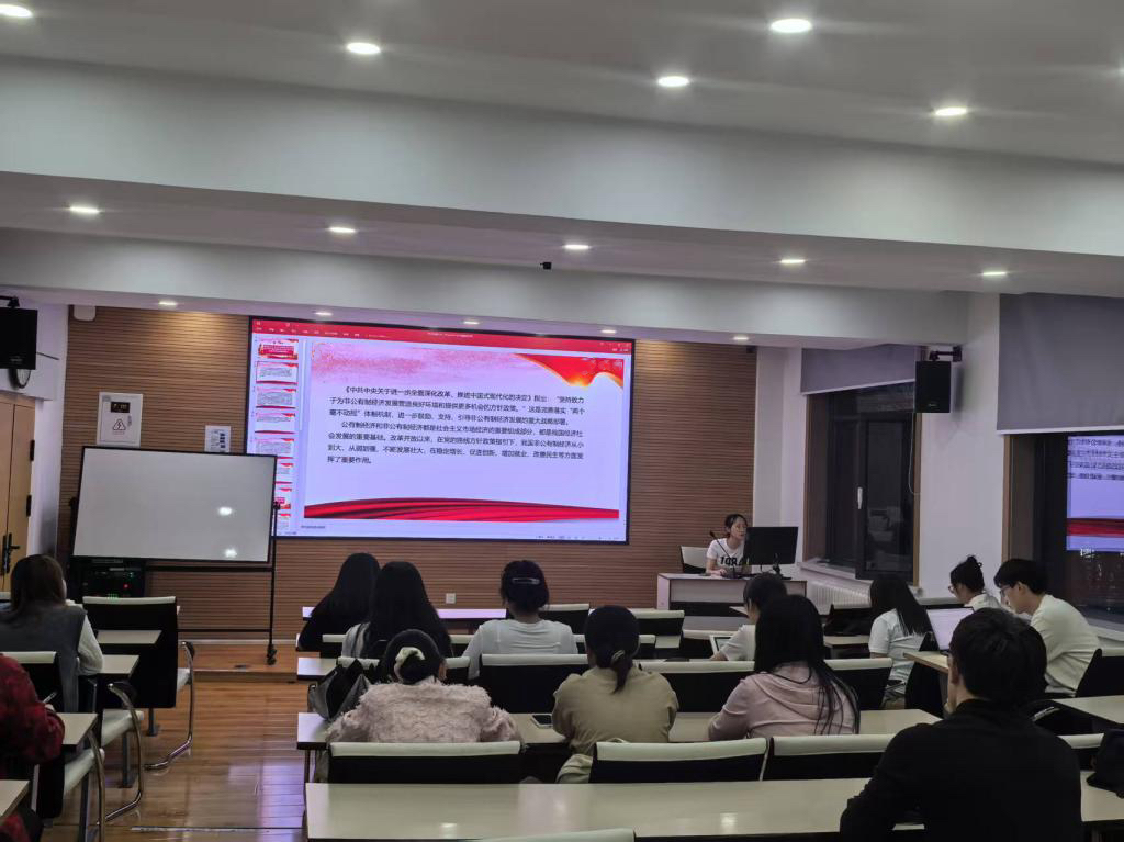2025年4月16日晚,2007so太阳集团工商管理学研究生党支部在知行楼(经管楼)309教室开展了集中学习活动。本次学习的领学人为支部党员项梦佳和王欣阳两位同志,学习内容为《关于开展深入贯彻中央八项规定精神学习教育的实施方案》与党的二十届三中全会精神。