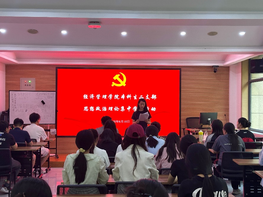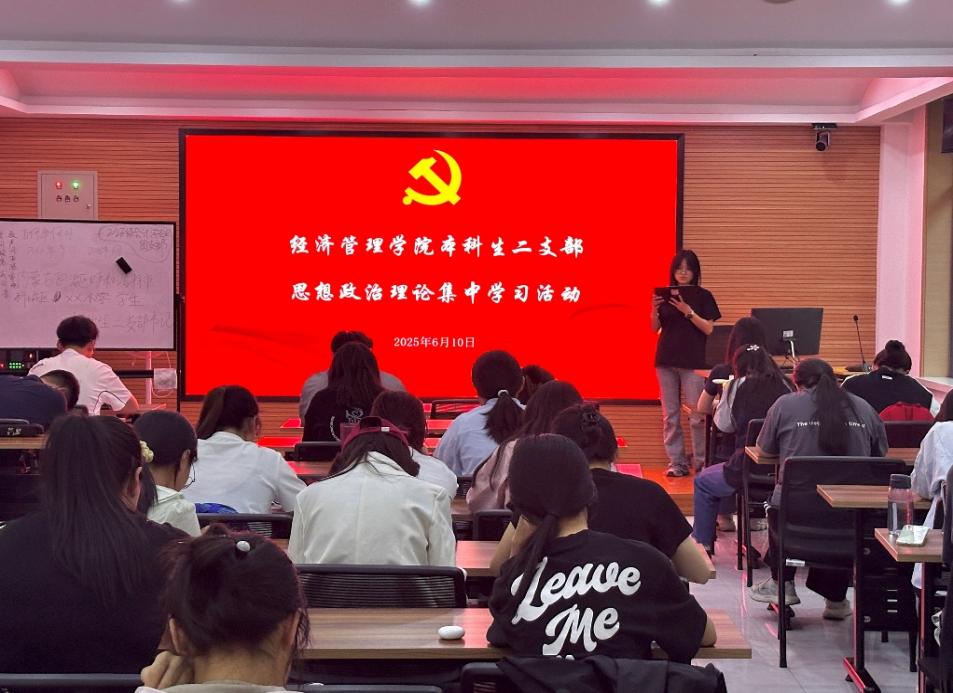 2025年6月10日晚,2007so太阳集团本科生二支部在知行楼(经管楼)108教室,开展了深入贯彻中央八项规定精神学习教育警示教育暨6月份集中学习活动,支部全体党员参加了学习,王泽旭和万耀芳两位同志进行了领学,支部书记周毅嵘主持会议。