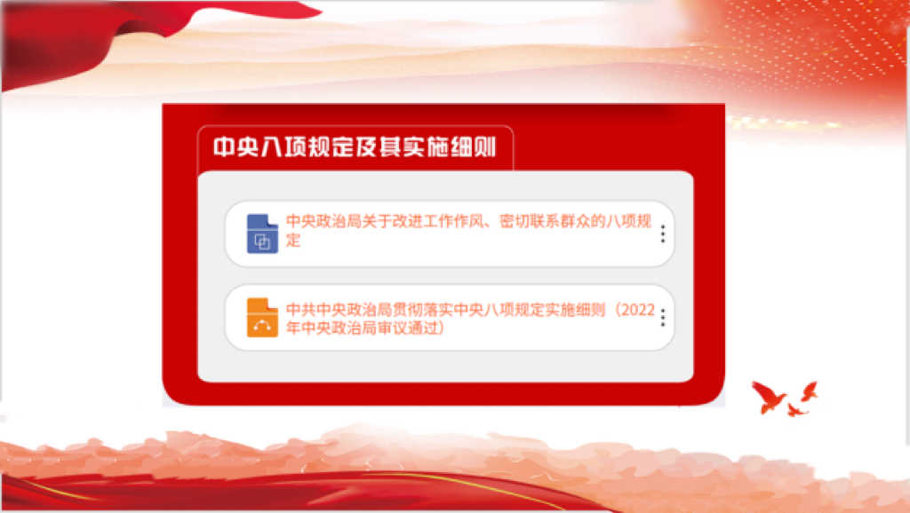 会上,李宜洺同志领学了中央八项规定及其实施细则,并结合近期中央和地方通报的违反八项规定精神的典型案例,开展了警示教育。